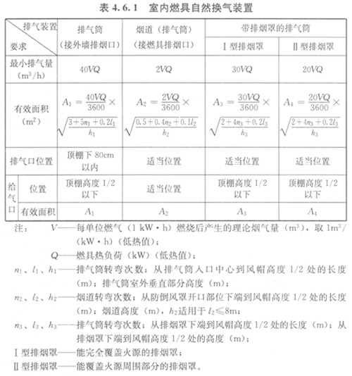 4.6.1室內(nèi)燃具自然換氣裝置應(yīng)符合表4.6.1的規(guī)定。