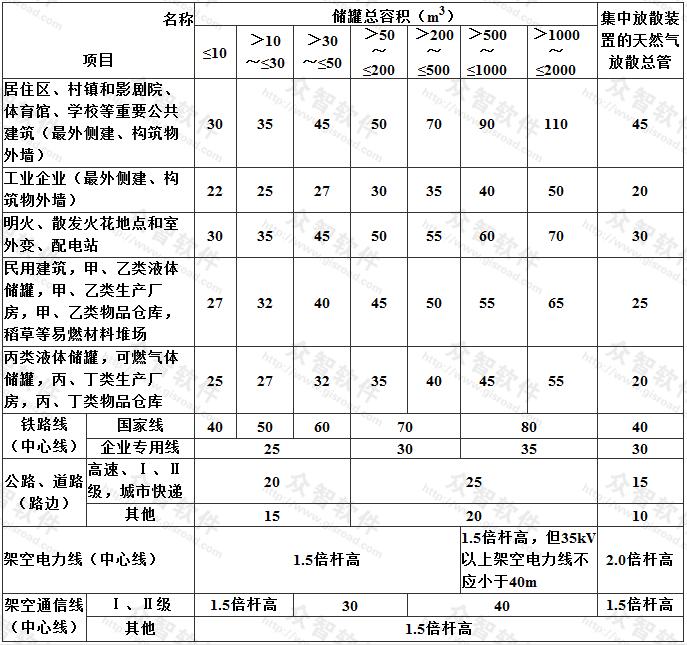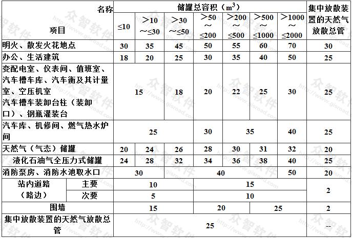 3 表9.2.4中集中放散裝置的天然氣放散總管與站外建、構(gòu)筑物的防火間距,是參照本規(guī)范天然氣門(mén)站、儲(chǔ)配站的集中放散裝置放散管的有關(guān)規(guī)定編制的。