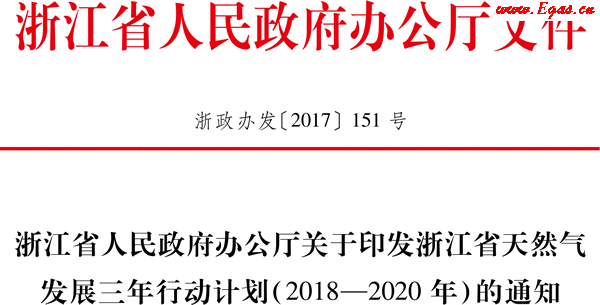 浙江省天然氣發(fā)展三年行動計劃(2018-2020年)