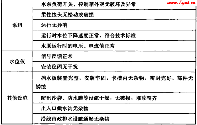 表5.7.4 給水排水系統(tǒng)巡檢內(nèi)容及要求