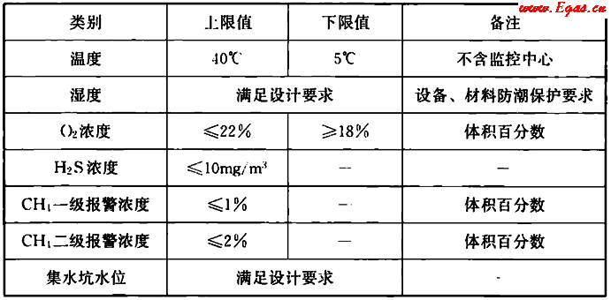 表5.6.4 主要環(huán)境參數(shù)報(bào)警設(shè)定值