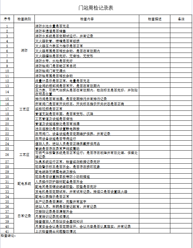 天然氣門站、CNG母站檢查記錄表 摘 要 天然氣門站、CNG母站檢查記錄表 天然氣門站、CNG母站檢查記錄表,本表為論壇群友早期提供,最近要清理論壇,轉發(fā)到本頻道,感興趣的下載查看 在線下載列表 會員下載需要E點:0 群友會員無限制下載 文章導航 贊 賞 分享 您可以選擇一種方式贊助本站 支付寶轉賬贊助 微信轉賬贊助 注解:本資料由會員及群友提供僅供閱讀交流學習,不得用于商業(yè)用途! 網(wǎng)站VIP會員無限制下載網(wǎng)站資料!贊助網(wǎng)站獲得,點擊贊助?。?/a> 城鎮(zhèn)燃氣管道安全運行與維護李慶林 《天然氣操作技術與安全管理》(第 《液化天然氣(LNG)工藝與工程》郭揆 《實用安全檢查表匯編:石油天然氣 < 上一篇 加氣站氣源調度工作流程 下一篇 > 消防設施檢查記錄表 文章導航