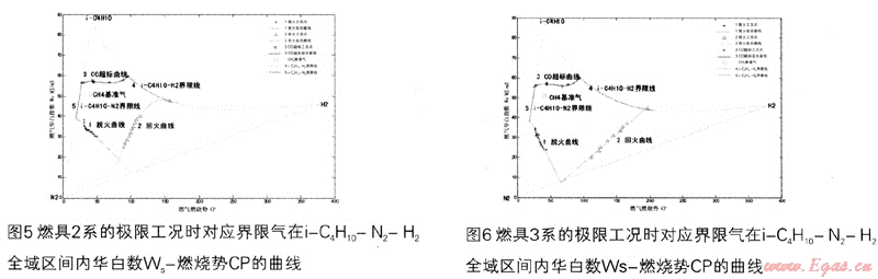 同理可以測得燃具2系、3系、……、5系等不同燃具的氣質(zhì)適應域。各系列燃具在極限燃燒工況下對應華白數(shù)Ws-燃燒勢CP在i-C4H10-N2-H2區(qū)間內(nèi)的曲線分別見圖5~8