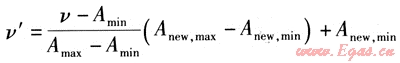 該方法是對初始數(shù)據(jù)進(jìn)行的一種線性轉(zhuǎn)換。它是將屬性A的一個(gè)值v映射為v′且有v′∈[Anew,min,Anew,max],具體映射計(jì)算式為: