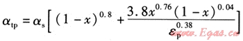 對(duì)于兩相流的管內(nèi)湍流換熱,αtp采用如下的關(guān)聯(lián)式表達(dá)[4]