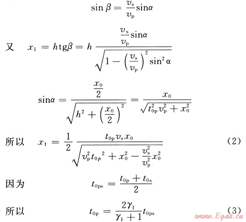 對(duì)于水平反射層,轉(zhuǎn)換波的時(shí)距方程可寫為: