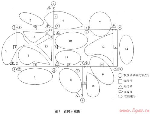 愈來愈多燃?xì)夤镜娜細(xì)夤芫W(wǎng)系統(tǒng)配置了地理信息系統(tǒng)(GIS)。GIS為燃?xì)夤芫W(wǎng)輸配調(diào)度與管理提供了面向管網(wǎng)的信息管理,為燃?xì)夤芫W(wǎng)的運行、管理提供管道信息庫、管網(wǎng)拓?fù)浣Y(jié)構(gòu)庫、管網(wǎng)信息數(shù)據(jù)庫,設(shè)備信息庫和管網(wǎng)信息管理平臺[1]。在其功能中包括故障管段隔離決策。