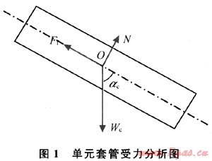 在大斜度井中,對(duì)斜井段常規(guī)下入法套管單元受力分析(見(jiàn)圖1),下套管作業(yè)時(shí)井口載荷為[6]