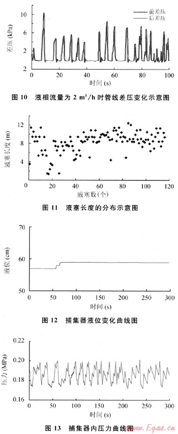 通過以上分析,可以得知該捕集器可以捕集較大長(zhǎng)度的液塞,在較長(zhǎng)液塞工況下,捕集器可以穩(wěn)定運(yùn)行,能較好地分離氣液,捕集器內(nèi)壓力和液位都比較穩(wěn)定。