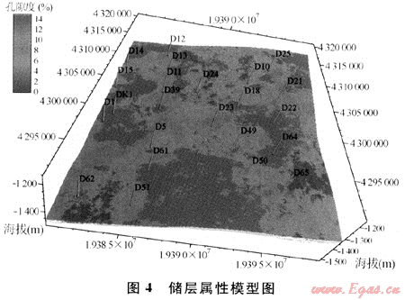 綜合利用地質(zhì)、地震和測井資料,建立精細(xì)的沉積微相模型,揭示了砂體的空間幾何展布形態(tài)。在相控基礎(chǔ)上進(jìn)行孔隙度、滲透率的研究,建立儲層屬性模型,則進(jìn)一步揭示了儲層非均質(zhì)性,指明了有利儲層發(fā)育區(qū),為進(jìn)一步的油氣田開發(fā)指明了方向。實(shí)踐證明,借助于沉積微相和屬性建模方法,使該區(qū)的新鉆井符合率有顯著提高。
