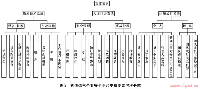 管道燃?xì)馄髽I(yè)的安全平臺支撐體系的3個支撐系統(tǒng)由一系列的要素構(gòu)成。
