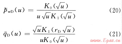 在定產(chǎn)量和定壓力兩種情況下,通過(guò)Laplace變換可分別求得生產(chǎn)井的壓力和產(chǎn)量為: