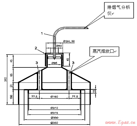 歐洲和南美的取樣器是個(gè)半封閉的罩形結(jié)構(gòu),煙氣通道和水蒸氣通道隔離,取樣原理采用我國(guó)燃?xì)鉄崴鞯姆绞?,也是按照熱?fù)荷的分級(jí)系列化制造,但是分級(jí)較少,不同熱負(fù)荷的燃燒器用鍋直徑和加水量有相同的情況,這種取樣器結(jié)構(gòu)和制作復(fù)雜,消耗材料多,笨重、造價(jià)高,對(duì)于系列化的結(jié)構(gòu)尺寸不完整,焊接要求高且難以保證,特別對(duì)于小功率燃燒器來講高度尺寸顯然不合理,甚至?xí)⒒鹧嫒堪菰谌悠鲀?nèi),造成二次空氣無法進(jìn)入,隨著使用時(shí)間增長(zhǎng)變形也越來越大,焊接應(yīng)力致使修復(fù)困難。