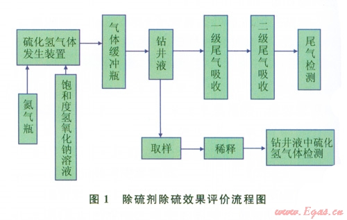 硫化氫屬劇毒氣體,當(dāng)空氣中濃度超過(guò)1 000mg/m3時(shí),可引起急性中毒,造成人員傷亡事故[1-3]。鉆井中,硫化氫氣侵首先會(huì)對(duì)鉆井液產(chǎn)生嚴(yán)重污染,導(dǎo)致鉆井液的流變性能變差,如影響攜帶巖屑、井壁穩(wěn)定、造成起下鉆壓力激動(dòng)等,增加鉆井成本;其次會(huì)對(duì)金屬產(chǎn)生氫脆破壞:造成井下管柱的突然斷落、井口裝置失效、地面管匯和儀表的爆裂,引發(fā)井噴失控或著火事故。因此,在鉆井過(guò)程中遇到H2S氣侵時(shí),能否及時(shí)清除鉆井液中的H2S氣體至關(guān)重要。國(guó)內(nèi)外現(xiàn)場(chǎng)鉆井過(guò)程中針對(duì)硫化氫氣侵采取的主要措施之一就是在鉆井液中加入除硫劑,使硫化氫氣體被氧化或與金屬離子生成沉淀,即將活性硫轉(zhuǎn)換成非活性硫。而現(xiàn)有室內(nèi)評(píng)價(jià)鉆井液硫化氫吸收劑除硫效果與現(xiàn)場(chǎng)使用效果差異較大。因此研究一種更加接近現(xiàn)場(chǎng)使用效果的室內(nèi)除硫劑除硫效果評(píng)價(jià)方法具有現(xiàn)實(shí)意義。
