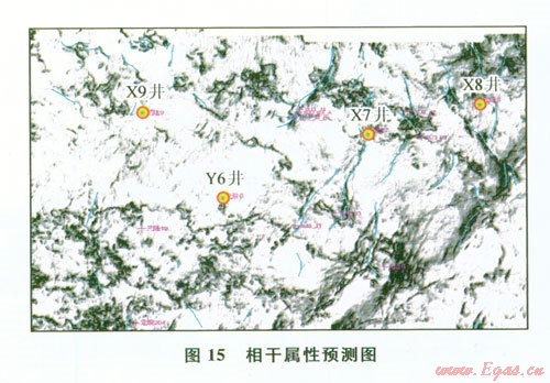 由于須三段儲層的重點勘探目標(biāo)“網(wǎng)狀裂縫”通常具有“雜亂反射”地震響應(yīng)特征,因此,可以利用多種反映地震子波橫向不穩(wěn)定性的地震屬性進(jìn)行裂縫預(yù)測(圖15、16)。
