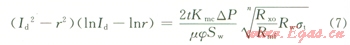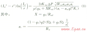 不難看出式(6)已經(jīng)消除了可變膠結(jié)指數(shù)的影響,進(jìn)一步證明了“當(dāng)其他條件不變時,鉆井液濾液侵入地層的深度主要受泥餅滲透率和地層的孔滲特性兩方面因素的控制,這點與非裂縫性砂泥巖地層比較類似”的觀點是經(jīng)得起推敲的。再將式(6)帶入式(3)可以得到: