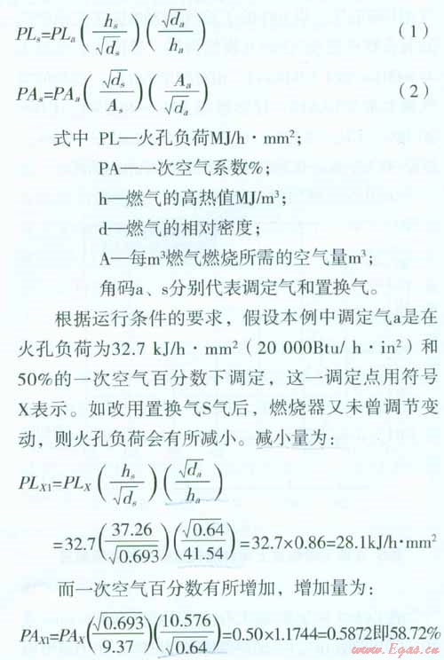 如前所述,本文是介紹美國(guó)燃?xì)饣Q性的求解公式,在此,先說(shuō)明燃?xì)饣Q前后,火孔負(fù)荷和一次空氣系數(shù)發(fā)生變化的計(jì)算公式,以加深對(duì)這些公式應(yīng)用的理解。公式導(dǎo)出的過(guò)程則隨后有所論證。