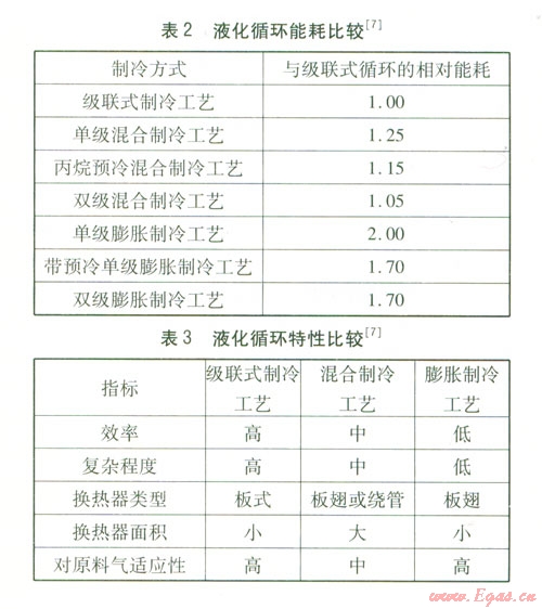 4天然氣液化工藝能耗及特性比較