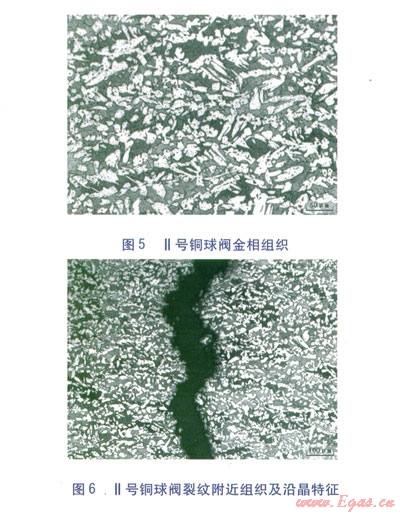 對I號、Ⅱ號銅球閥的金相組織[1]及裂紋進行分析,結(jié)果如下: