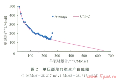 對于天然裂縫不發(fā)育的低滲、致密砂巖氣藏的氣井,在儲層條件不變的情況下,有效壓裂段數(shù)不同,其產(chǎn)量也不同。在合理的壓裂間距下,氣層長度越長,氣井的有效壓裂段數(shù)越多,氣井的產(chǎn)量也越高。因此,國際上多采用單壓裂段產(chǎn)能疊加法進(jìn)行水平井產(chǎn)能評價,西加盈地的Montney組致密氣藏也采用該分析方法來評價氣井產(chǎn)能和預(yù)測氣藏儲量(圖2)。