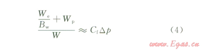 圖1的分析是按孔隙型儲層計(jì)算巖石有效壓縮系數(shù)得到的。裂縫系統(tǒng)的壓縮系數(shù)遠(yuǎn)高于孔隙系統(tǒng),根據(jù)式(4)可知其極限水侵量占可動(dòng)水體儲量的比例會(huì)更大。另一方面,目前流行的巖石有效壓縮系數(shù)計(jì)算方法未充分考慮壓力降低后巖石空隙巾高壓流體支撐作用減退的影響。有研究表明,充填不同流體的多孔巖石彈性模量不同,在相同有效應(yīng)力作用下,充填水的空隙在流體壓力釋放后變形強(qiáng)于氣層[3]。綜合以上分析可知,儲層裂縫發(fā)育的水區(qū)極限水侵量很可能比針對孑L隙型儲層的預(yù)測值成倍增大,這是一些與小水體接觸的氣藏開發(fā)過程巾呈現(xiàn)強(qiáng)水侵的原因。