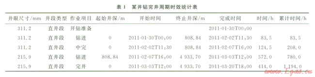 4.1 鉆井周期工時定額計算分析