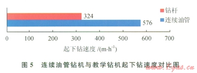 在相同地質(zhì)狀況和用同一臺鉆井泵的情況下,將連續(xù)油管鉆機與相距35.6m處宏華2號教學(xué)鉆機(ZJ40DBS鉆機+頂驅(qū))的鉆井情況進行對比如下: