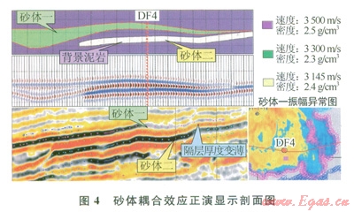 DFl3氣田平面分布達(dá)數(shù)百平方千米,儲(chǔ)層、蓋層橫向上變化較大。受沉積速度、厚度及壓實(shí)不均影響,泥巖蓋層的速度及密度在空間上存在較大差異。由此導(dǎo)致同一套氣層具有完全不同的地震響應(yīng)特征。當(dāng)存在致密泥巖蓋層時(shí),致密泥巖旁瓣的波谷會(huì)與氣層頂面的波谷疊加,導(dǎo)致氣層頂面出現(xiàn)異常亮點(diǎn);相反,當(dāng)蓋層是一套相對(duì)低阻抗泥巖時(shí)(本區(qū)蓋層阻抗均高于儲(chǔ)層),氣層頂面反射相應(yīng)減弱,從而導(dǎo)致對(duì)儲(chǔ)層含氣性的誤判。