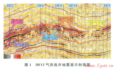 本次研究根據(jù)PVTDST測(cè)試數(shù)據(jù),得到高溫高壓條件下氣體的密度及體積模量。研究結(jié)果顯示:當(dāng)高溫高壓儲(chǔ)層的含水飽和度低于70%時(shí),縱波速度對(duì)含水飽和度并不敏感;當(dāng)含水飽和度大于70%時(shí),縱波速度隨著含水飽和度的增加而逐漸增大(6)。對(duì)于DFl3氣田來說,各井所鉆遇砂體普遍都有錄井氣測(cè)異常響應(yīng),測(cè)井解釋含氣飽和度都在20%以已故這些砂體在地震剖面上均表現(xiàn)為強(qiáng)振幅反射。受高溫高壓的影響,氣組內(nèi)氣水過渡帶較長(zhǎng),在含氣水層、氣水同層也會(huì)顯示為“亮點(diǎn)”特征。本次流體替換研究結(jié)果得到了與正常穩(wěn)壓條件下不同的含水飽和度與速度的變化趨勢(shì),但對(duì)解決高溫高壓儲(chǔ)層的含氣飽和度NN問題還存在瓶頸?;诤瑲怙柡投葘?duì)地震屬性的影響,在含氣范圍固定及開發(fā)井位部署時(shí)要充分考慮氣水過渡帶問題,結(jié)合地質(zhì)信息,規(guī)避風(fēng)險(xiǎn)。