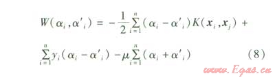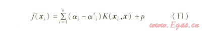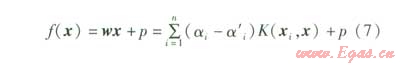 根據(jù)支持向理機(jī)理論,該非線性函數(shù)關(guān)系可以用支持向量機(jī)對(duì)前i-1天實(shí)測(cè)數(shù)據(jù)的學(xué)習(xí)來(lái)獲得,其回歸計(jì)算公式為: