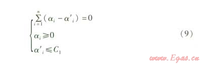 (7)中的參數(shù)αi,α'i,p通過(guò)解下面的二次優(yōu)化問(wèn)題獲得,優(yōu)化的目標(biāo)函數(shù)為: