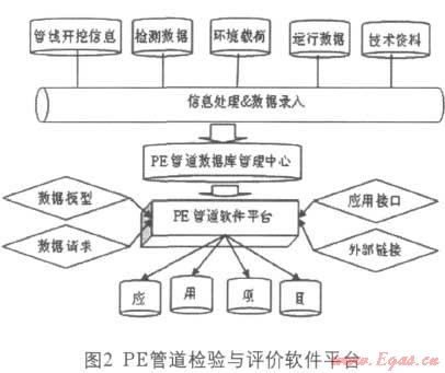 軟件平臺是IT技術(shù)在PE管道檢驗與評價中的應(yīng)用?;跀?shù)據(jù)庫技術(shù)構(gòu)建PE管道信息數(shù)據(jù)庫,有效管理PE管道數(shù)據(jù),從而實現(xiàn)管道信息共享,并利用信息數(shù)據(jù)庫編制PE管道風(fēng)險評估系統(tǒng),構(gòu)建以風(fēng)險檢驗為核心的PE燃?xì)夤艿腊踩u價軟件應(yīng)用平臺。PE管道檢驗與評價軟件平臺如圖2所示。