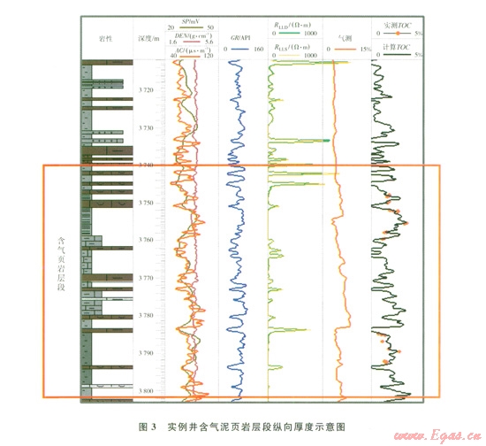 實(shí)例井的含氣泥頁巖層段從3