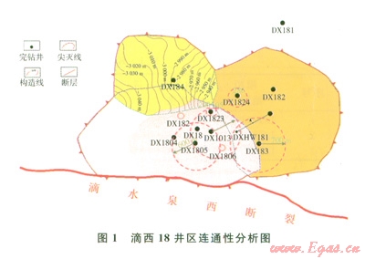 2)研究認(rèn)為DX182、DX1824井是連通的,DX1804井可能與DX18井或者DX1805井連通,其余井間的連通性較差。