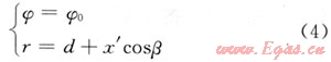 ,裂紋長為2a,O′為裂紋的中點,裂紋的傾角為β,裂紋相對最大水平地應(yīng)力的方位角為φ0。求出裂紋面上每一點的正應(yīng)力和剪應(yīng)力,即可得到應(yīng)力強度因子;求出裂紋面上每點的應(yīng)力狀態(tài),即可得到剪應(yīng)力和正應(yīng)力;只需求出每點的r和φ,然后代入定向井井周應(yīng)力計算公式即可得到應(yīng)力狀態(tài)。根據(jù)假設(shè)可知: