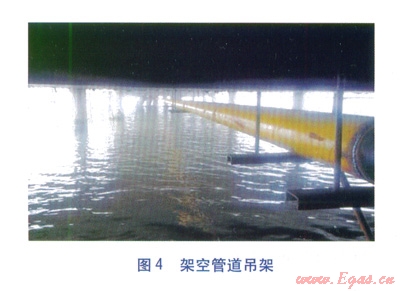 方案一:用鋼管架空敷設于跨海大橋橋身下面,長度為50m的Æ325×7鋼管質量約3000kg,加上相關支架等附件和管道天然氣,總質量不超過4t,通過咨詢亞沙會組委會,橋梁設計承重完全可以滿足管道的敷設。