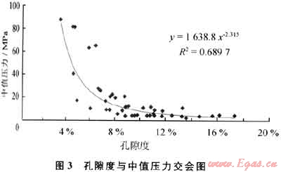 有效孔隙度下限確定有兩種方法:①根據(jù)壓汞資料,分析中值壓力與孔隙度的關(guān)系,當(dāng)孔隙度小于某一值時(shí),中值壓力迅速增大,說明當(dāng)孔隙度小于該值時(shí),汞基本壓不進(jìn),即這部分孔隙基本為無(wú)效孔隙[6~7](圖3),利用該法確定的研究區(qū)有效孔隙度下限為7%;②統(tǒng)計(jì)試油產(chǎn)層段與干層段孔隙度的分布特征來(lái)確定(圖4)。由圖3可知,干層和氣層孔隙度的分界線在7%左右,可見該區(qū)儲(chǔ)層有效孔隙度取7%比較合適。