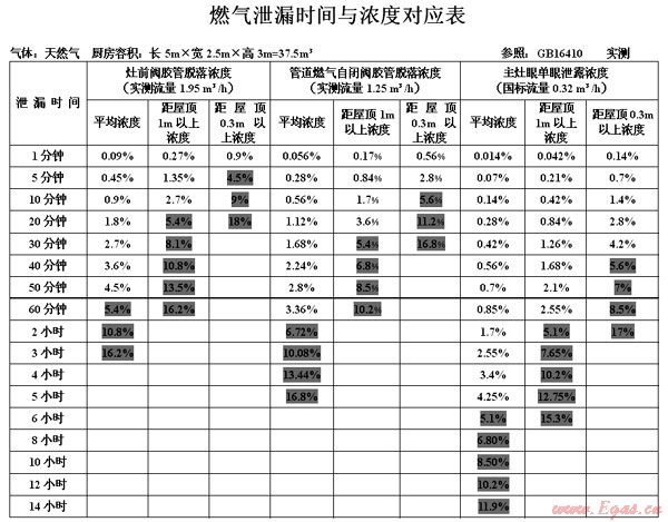 我們在大量實驗基礎(chǔ)上,總結(jié)出了《燃氣泄漏時間與濃度對應(yīng)表》(見附表),我們將爆炸危害程度分為一級危害(閃爆、著火、自家受損)、二級危害(玻璃幕墻、外墻倒塌,建筑物受損)、三級危害(整棟房屋倒塌、人員傷亡慘重、影響巨大)。