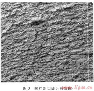 綜合以上分析推斷4#、5#、6#、7#螺栓在過高的交變應(yīng)力和腐蝕作用下產(chǎn)生了疲勞裂紋,在疲勞裂紋擴(kuò)展到一定程度時(shí),螺栓因受力過載發(fā)生全部斷裂。結(jié)論為:
