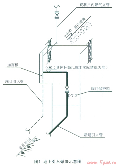 燃?xì)庖肟跒橥ピ喝細(xì)夤艿琅c戶內(nèi)燃?xì)夤艿赖姆纸琰c(diǎn),分為地上引入口和地下引入口兩種,是管件的主要集中部位,也是安全事故多發(fā)部位。用戶引入口更貼近居民的日常生活區(qū)域,一旦發(fā)生泄漏事故將直接危及居民的人身、財(cái)產(chǎn)安全。岡此,能否對燃?xì)庖肟谶M(jìn)行安全、合理的改造,是實(shí)現(xiàn)安全用氣,造福于民的關(guān)鍵措施之一。