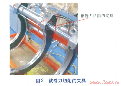品牌l自動(dòng)熱熔焊機(jī)不具備自動(dòng)停止銑切功能,即使銑刀產(chǎn)生銑切機(jī)架,銑切過(guò)程也不會(huì)自動(dòng)停止。被銑刀切削的夾具見(jiàn)圖2