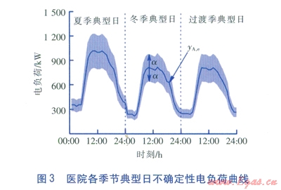 分布式能源系統(tǒng)的優(yōu)化配置對(duì)于獲得好的經(jīng)濟(jì)效益至關(guān)重要,而優(yōu)化配置又強(qiáng)烈依賴(lài)于用戶(hù)的各類(lèi)負(fù)荷需求。目前在優(yōu)化配置中通常采用兩種負(fù)荷,一種是夏季、冬季和過(guò)渡季等幾種典型日的負(fù)荷預(yù)測(cè)值[7],另一種是全年逐時(shí)(8760h)負(fù)荷預(yù)測(cè)值[8]。但前者忽略了同一個(gè)季節(jié)內(nèi)負(fù)荷的差異;即使是基于后一種方法,現(xiàn)實(shí)中存在的氣象條件、內(nèi)擾不確定性,以及各能量預(yù)測(cè)供應(yīng)的對(duì)象、面積與實(shí)際運(yùn)行時(shí)的偏差,也可能導(dǎo)致聯(lián)供系統(tǒng)的設(shè)備投資浪費(fèi)或不足、經(jīng)濟(jì)效益無(wú)法充分發(fā)揮,極端情況下甚至?xí)霈F(xiàn)停運(yùn)的尷尬局面,上海黃浦區(qū)中心醫(yī)院就是典型的例證[9]。因此,考慮用戶(hù)負(fù)荷需求的不確定性,以增強(qiáng)分布式能源系統(tǒng)經(jīng)濟(jì)效益的魯棒性,是聯(lián)供系統(tǒng)優(yōu)化配置的現(xiàn)實(shí)需求。