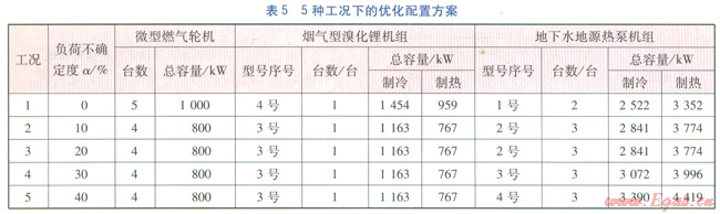 工況2~5:冷熱電負(fù)荷的不確定度a分別為10%、20%、30%和40%。