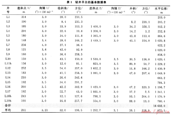 BH36油氣田經(jīng)過10多年的開發(fā)[1],已經(jīng)形成了一套海上叢式井鉆井技術(shù)體系[2~3]且逐漸步入開發(fā)的中后期,為有效提高剩余油氣的動(dòng)用程度,提高采收率,通過實(shí)施細(xì)致的油氣藏工程分析,決定在原來350m×350m的開發(fā)井網(wǎng)中實(shí)施排狀加密。井口間距2.0m×2.0m,每個(gè)鉆井平臺(tái)總井?dāng)?shù)為16口,控制含油氣面積大約2km2,該油氣田垂深平均為1600m,平均井深在2000m左右。不難看出,在原井網(wǎng)中鉆再加密井網(wǎng)進(jìn)行調(diào)整是海上油氣田開發(fā)所面臨的新課題。該區(qū)的井身結(jié)構(gòu)如圖1所示,平臺(tái)的基本數(shù)據(jù)如表1所示。