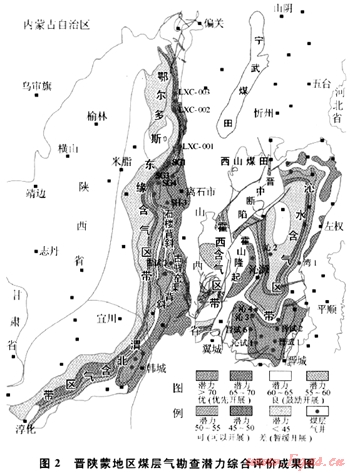 晉陜蒙地區(qū)煤層氣勘查潛力綜合評(píng)價(jià)成果如圖2所示。