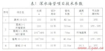 管道運輸是油氣運輸?shù)闹饕椒ㄖ?,具有連續(xù)、快捷、安全、經(jīng)濟的特點。隨著海上油氣田的不斷開發(fā),管道運輸工藝被廣泛應用,它將海上油氣田、儲運設施或陸上處理終端連接成一個有機的整體,形成相互關聯(lián)相互協(xié)調(diào)的生產(chǎn)操作系統(tǒng)。深水油氣資源一般遠離陸地,不但開發(fā)成本高而且維修非常困難,為了提高經(jīng)濟性一般深水海底管線的設計壽命都比較長,對防腐要求較高。