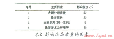 表面處理的好壞對涂層質(zhì)量影響很大,有學者研究過影響涂層質(zhì)量和壽命的各種因素,結(jié)果如表5所示[1],顯然表面處理的質(zhì)量是對涂裝質(zhì)量影響最大的因素。在海管節(jié)點的防腐施工中表面處理也非常關鍵,為了保證防腐效果必須對鋼表面進行噴砂處理,達NSa2.5級以上。