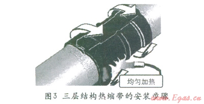 為了滿足設計要求,一般深水海管節(jié)點都選用三層結(jié)構熱縮帶,這種熱縮帶在鋪管船作業(yè)線上施工主要有以下幾個關鍵點: