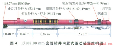 樂(lè)東22-1氣田施工的Æ339.7mm套管鉆井動(dòng)力傳遞由套管鉆井矛總成來(lái)實(shí)現(xiàn)。