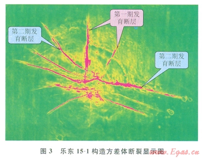 樂(lè)東l5-1構(gòu)造中的每條斷層因其所處位置的差異。所受泥底辟應(yīng)力的作用也存在差異。因此,各斷層的特征和活動(dòng)強(qiáng)度也各不相同??傮w上說(shuō),斷距在背斜頂部最大,向翼部斷距逐漸變小直至消失,斷層延伸長(zhǎng)度最大約6.5km,落差為0~180m。